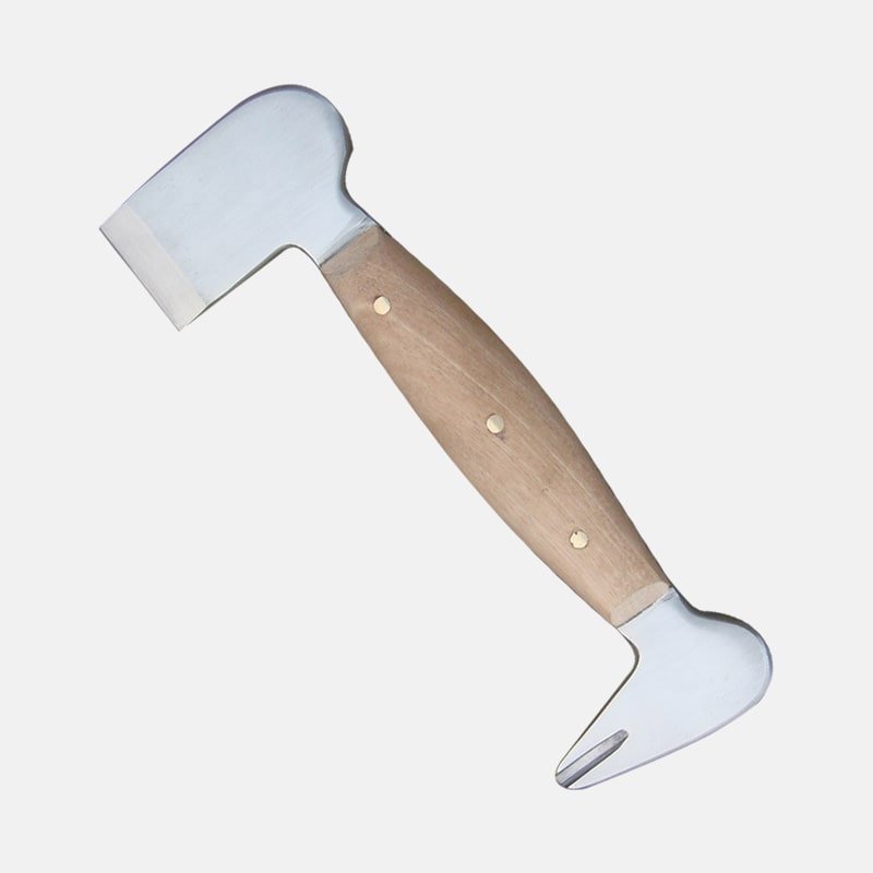 This versatile, multi-purpose tool combines a sharp clinch cutter with a clinch gouge. Horse hoof knife is suitable for an efficient cut in dry environments or for harder hooved horses. Horse hoof knife combines the comfort of the easy handle with better balance, increased leverage and improved manufacturing methods to save valuable time and energy for you. Horse hoof knife is made of high quality tool steel, hardened for durability and sturdiness. The cut fileside, wider so making more efficient flattening and levelling, leaving a finished. Horse hoof knife then has a comfortable wooden handle with a unique design to help prevent slipping