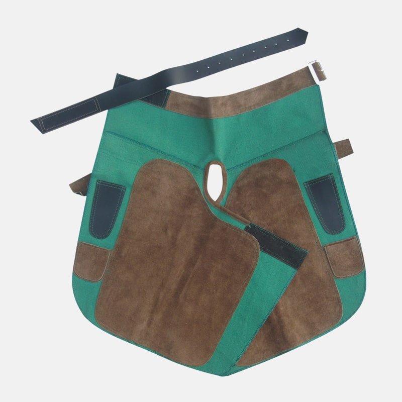 Farrier Chap / Apron ( 100% Genuine FULL SUEDE LEATHER ) These New Professional Premium Quality Leather Chaps / Apron Made Of 100 % Genuine LEATHER. They Are Comfortable to Wear, With 2 Knife Pockets, 2 Nail Holder Magnate, Buckled Leg Strap And Waist Straps